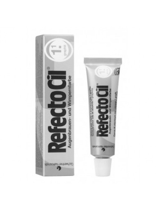 Классический черный цвет. Великолепно окрашивает каждый волосок независимо от натурального цвета бровей и ресниц. С помощью этой краски можно придать более насыщенный цвет бровям и ресницам с натуральным черным или коричневым цветом, полностью окрасить светлые или седеющие брови и ресницы. Чтобы получить более холодный, несколько пепельный оттенок подмешайте к основной краске Рефектоцил Графит 1.1 в соотношении 1:1. А для того, чтобы создать более теплый оттенок подмешивайте к основной краске Рефектоцил № 4 Каштановый или Рефектоцил № 4.1 Красный в соотношении 1:0,1.